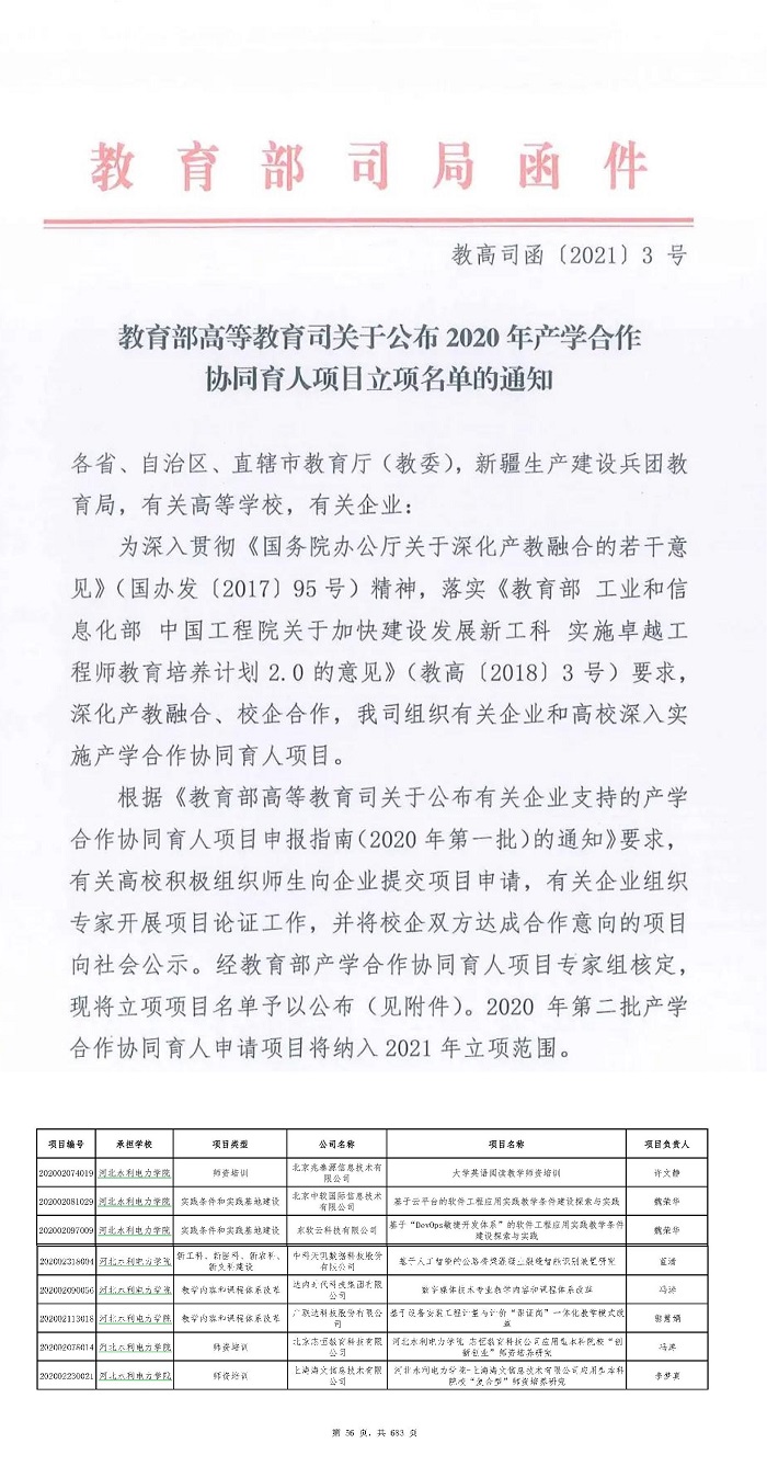 2021年3月4日,教育部高等教育司公布了2020年产学合作协同育人项目立项名单,我校共有8个项目入选。自2017年以来,我校连续四年获得产学合作协同育人项目立项支持。 产学研合作协同育人项目是全面深化新工科建设的重...