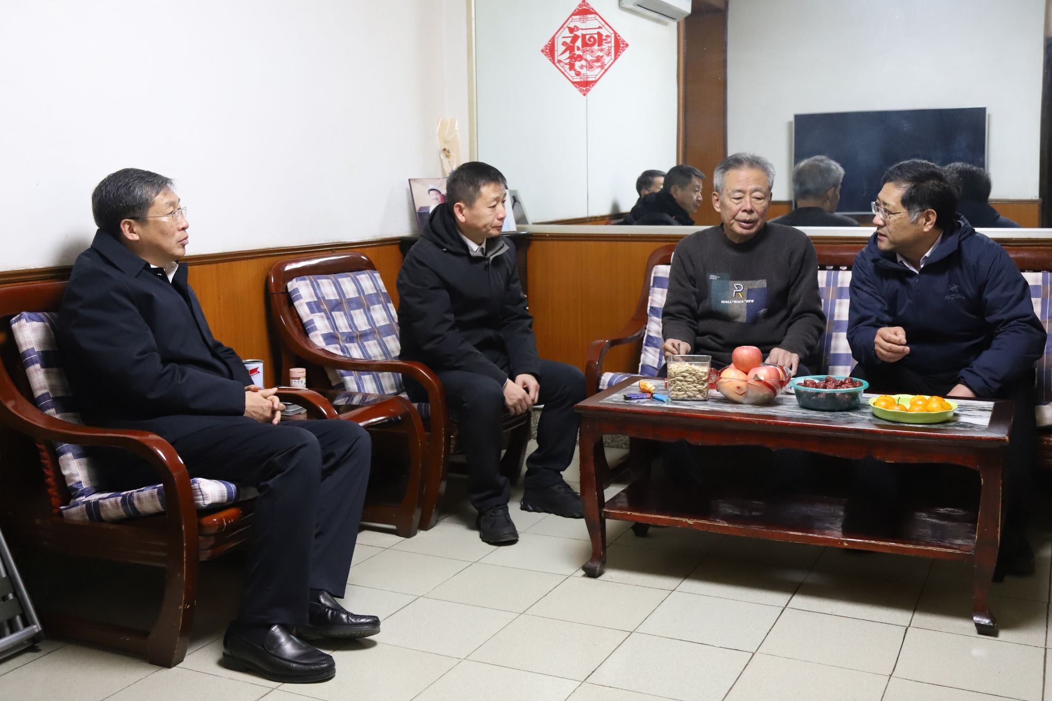 农历新春将至,1月9日上午,校领导张效松、王滨、于振海带领相关部门负责人走访慰问部分离退休老干部、老教师、老党员,为他们送去了校党委的深切关怀和全体师生的美好祝愿。校领导与老同志们拉家常、忆往事,亲切询问他们的身体和生活情况,叮嘱他们保重身体健康,保持身心愉快。校领导还向老同志们介绍了学校近年发展建设情况,尤其是今年教育教学合格评估的情况,感谢他们在不同时期为学校发展建设做出的积极贡献,征求他们对学校下一阶段的发展规划的意见和建议,...