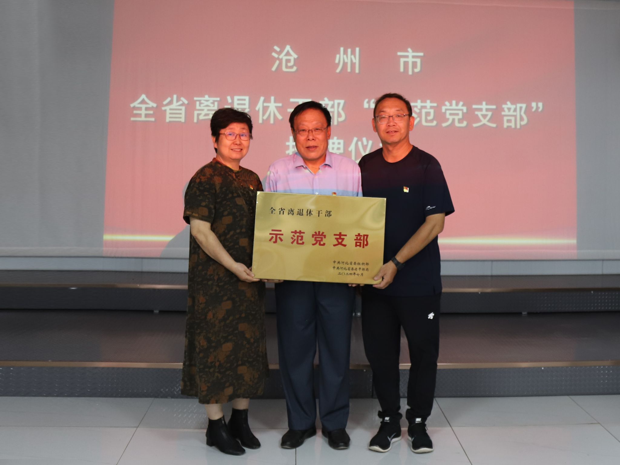 9月14日,沧州市全省离退休干部“示范党支部”授牌仪式在我校离退休职工活动室召开,我校离退休党总支四支部荣获全省离退休干部“示范党支部”荣誉称号。沧州市老干部局副局长陈蕾、党建工作科科长崔松出席仪式,我校离退休党总支书记杨凤阁、离退休四支部书记王建平及班子成员参加仪式。在仪式上,离退休四支部书记王建平作了题为《退休不褪色、薪火永相传》的典型发言。他指出,离退休四支部在学校党委、离退休党总支的正确领导下,...