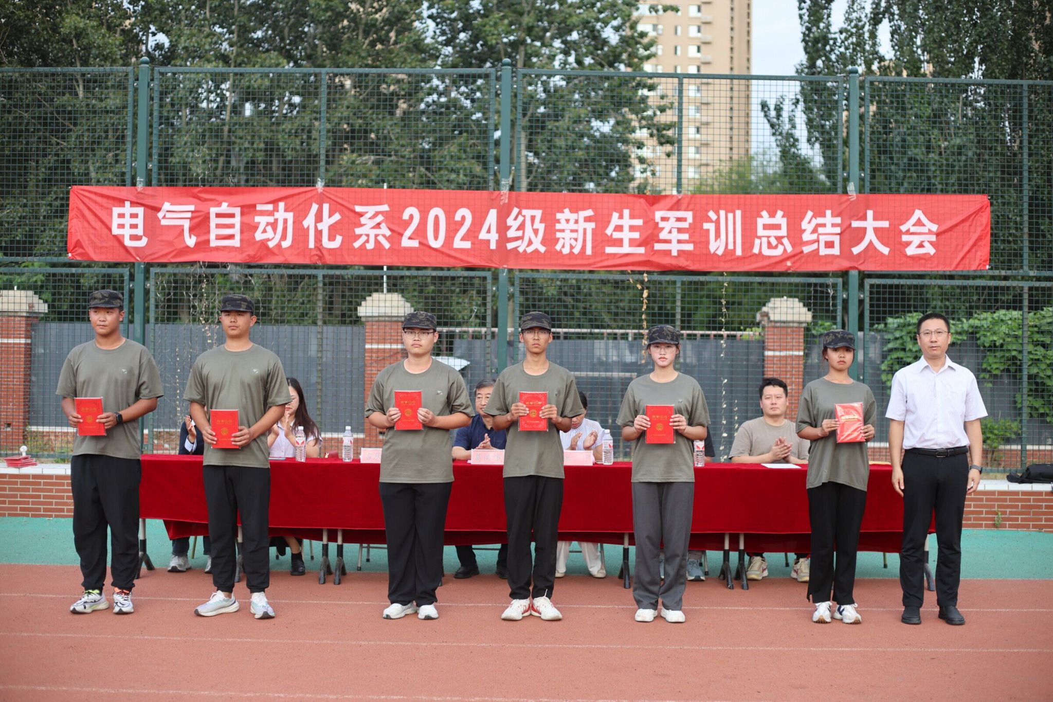 9月13日,电气自动化系举行2024级新生军训总结大会。电气自动化系党总支书记葛洪伟、副主任吉庆昌、团委书记张宁以及电气自动化系全体辅导员参加大会,总结大会由张宁主持。骄阳似火,青春飞扬,绿草如茵的田径运动场上口号震天。电气自动化系2024级新生军训全体参训人员整装待发接受检阅。参训方队有序入场,新生们以整齐的步伐、挺拔的身姿走过主席台,每一个动作都精准到位,每一个眼神都坚定有力,展示出了顽强拼搏的精神风貌,...