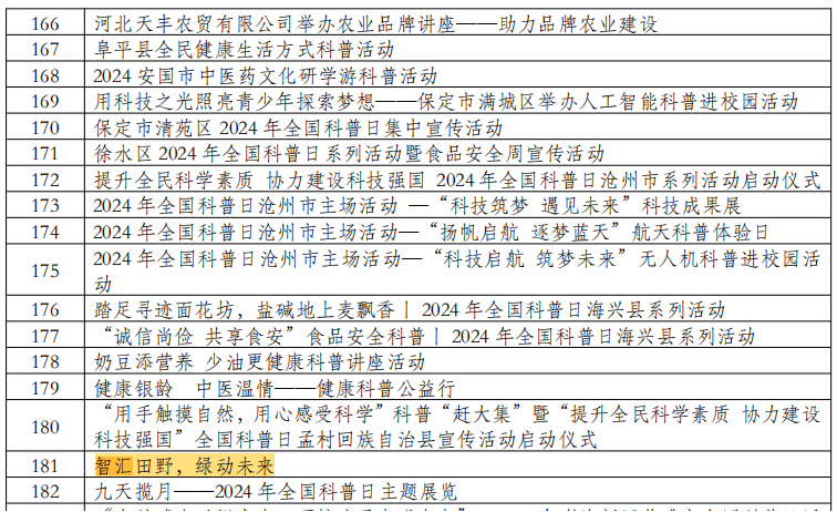 按照中国科协等21部门《关于举办2024年全国科普日活动的通知》和《中国科协科普部关于推荐2024年全国科普日活动优秀活动和优秀组织单位有关事项的通知》的相关要求,经初审及专家评审,我校“智汇田野,绿动未来”活动获评“2024年河北省全国科普日优秀活动”。“智汇田野,绿动未来”全国科普日主题活动旨在将科普搬到田间地头,通过高端科技力量赋能乡村振兴,加速推进农业强国建设。此次活动充分展现了我校作为应用型本科院校将科研成果转化为实际生产力,...