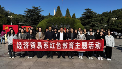 为深入学习贯彻习近平新时代中国特色社会主义思想主题教育,促进以学铸魂、以学增智、以学正风、以学促干,10月21日,经济贸易系党总支组织前往河北省石家庄市革命圣地西柏坡开展红色教育主题活动。经济贸易系党总支书记苗立峰、党总支副书记任冠华、辅导员王馨平老师、郑义老师、于尧老师以及31位学生党员参加活动。10月21日上午,全体党员在西柏坡纪念馆广场开展了敬献花篮仪式和重温入党誓词活动。现场全员肃立,苗立峰同志向前整理敬联,...