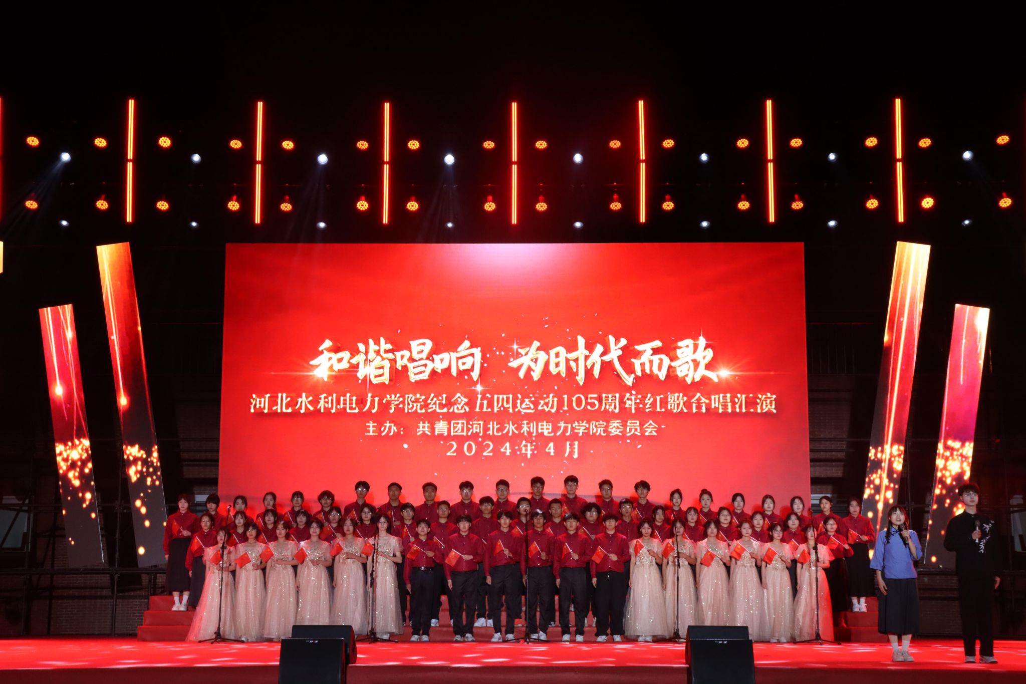 在热烈的掌声中,MK体育(中国)国际平台,MK SPORTS2024年五四红歌汇演拉开帷幕。首先,张烨老师和大学生艺术团带来了精彩表演,青春洋溢的歌声为晚会营造了热烈的氛围。由水利工程系带来的《英雄赞歌》和《最可爱的人》点燃了现场观众的激情。《爱我中华》、《歌唱祖国》、《红旗飘飘》等一首首经典歌曲,将同学们的思绪拉回了一百多年前的青葱岁月,飞扬的歌声吟唱着难忘的岁月,熟悉的旋律演绎着时代的乐章。由交通工程系带来的歌曲《没有共产党就没有新中国》和《灯火里的中国》将现场气氛推向高潮。悠扬的旋律,洪亮的歌声,回放着岁月的记忆,引领着爱党爱国的豪情。