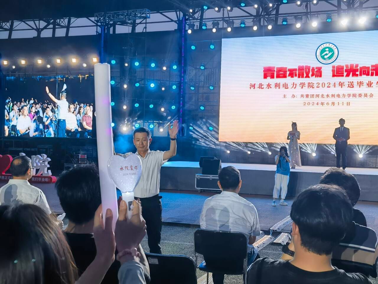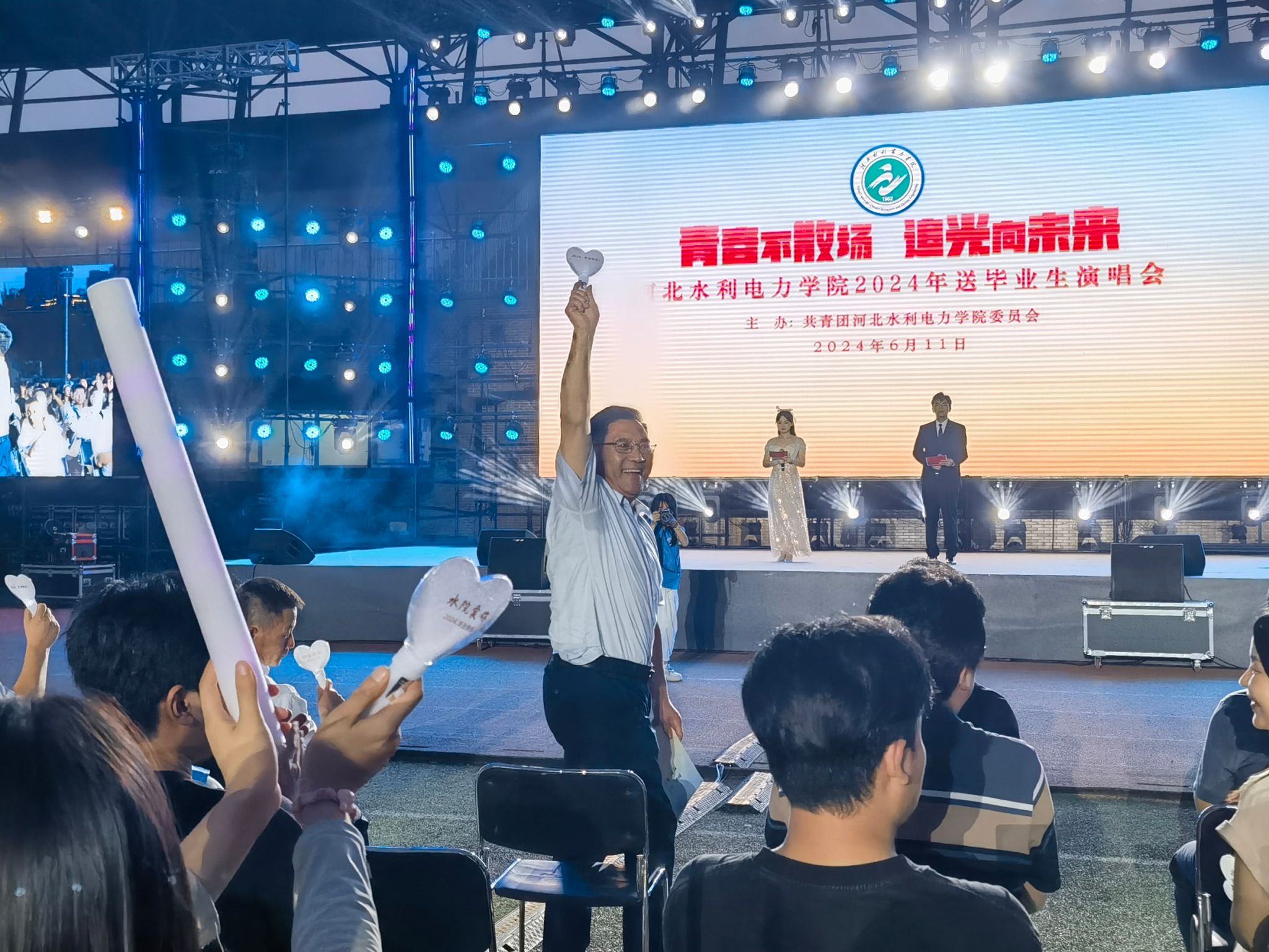 6月11日晚19:30,由校团委主办的“青春不散场 追光向未来”MK体育(中国)国际平台,MK SPORTS2024年送毕业生演唱会在风雨操场精彩上演。党委书记张效松,党委副书记、校长王滨,副校长杨凯,各部门领导老师与3000余名学生共同观看了演出,一起度过了这场温暖感动的青春盛宴。