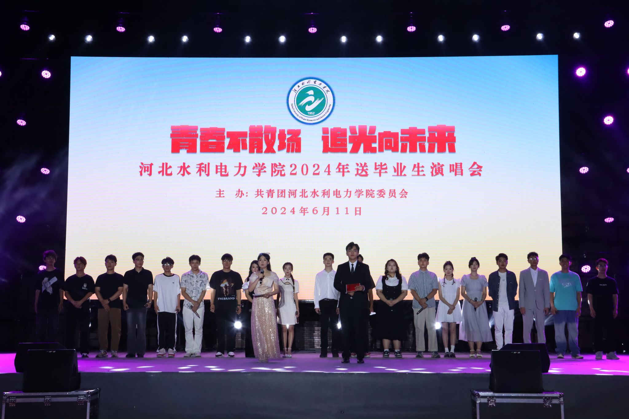 演唱会上,一首首熟悉的旋律唤起了大家对青春的回忆,《睡在我上铺的兄弟》《少年》《同桌的你》等歌曲的演唱,仿佛将大家带回到了那个充满梦想和激情的年代。每一首歌都饱含着对母校的深深眷恋和对未来的美好祝愿,仿佛在告诉每一位毕业生:青春的故事,从未结束。青春的旋律跳跃在每一位毕业生心怀,激荡起水院学子奋进新征程、建功新时代的勇气与力量。