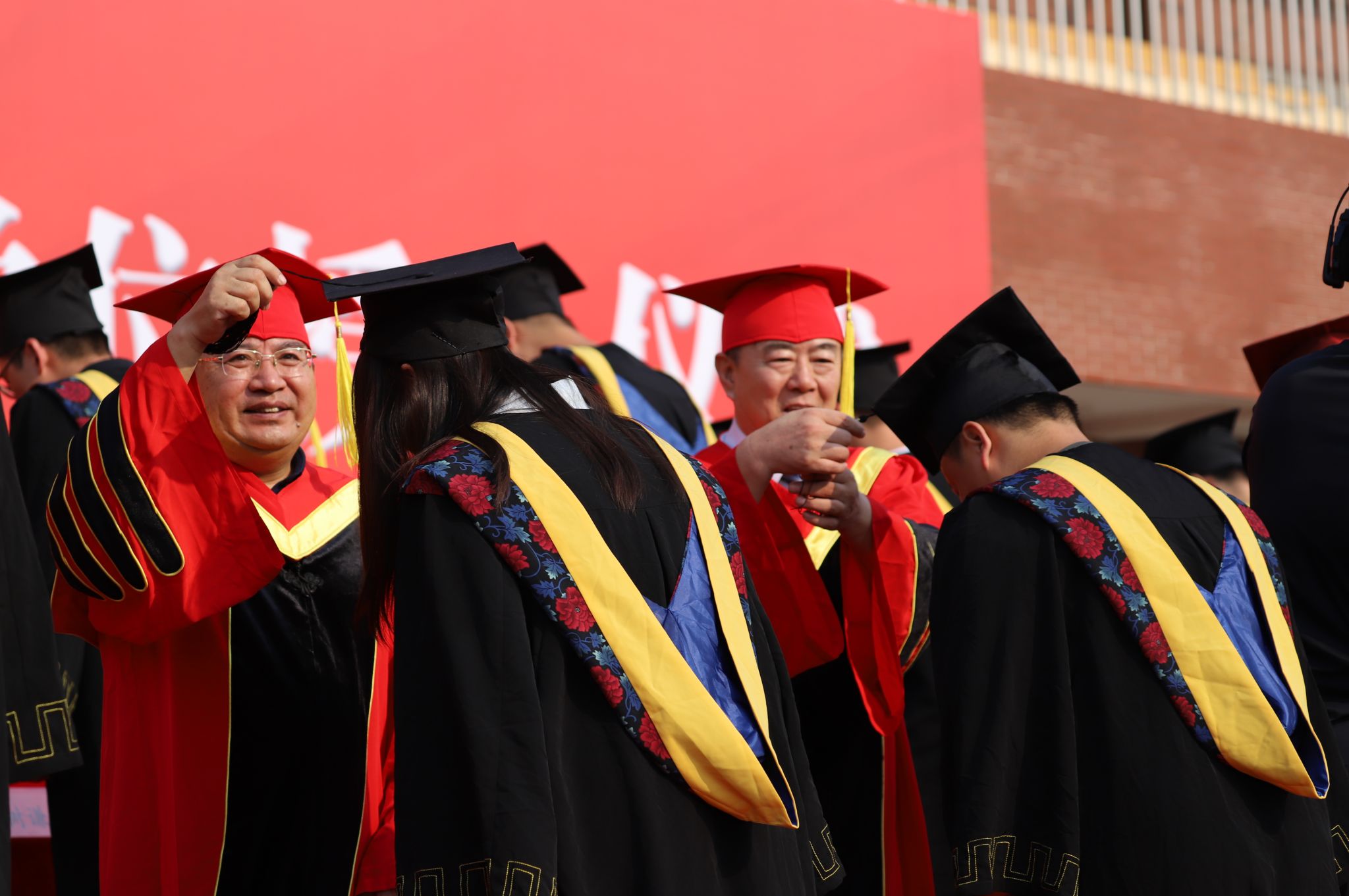 6月20日上午,我校在体育场举行2024届学生毕业典礼暨学位授予仪式。学校党委书记张效松,党委副书记、校长王滨,副校长崔立功,纪委书记方敏,副校长王建明,副校长杨凯出席仪式,各系主任及学校学位评定委员会委员、各系教师代表及毕业生代表共计1500余人参加毕业典礼。典礼仪式由副校长于振海主持。