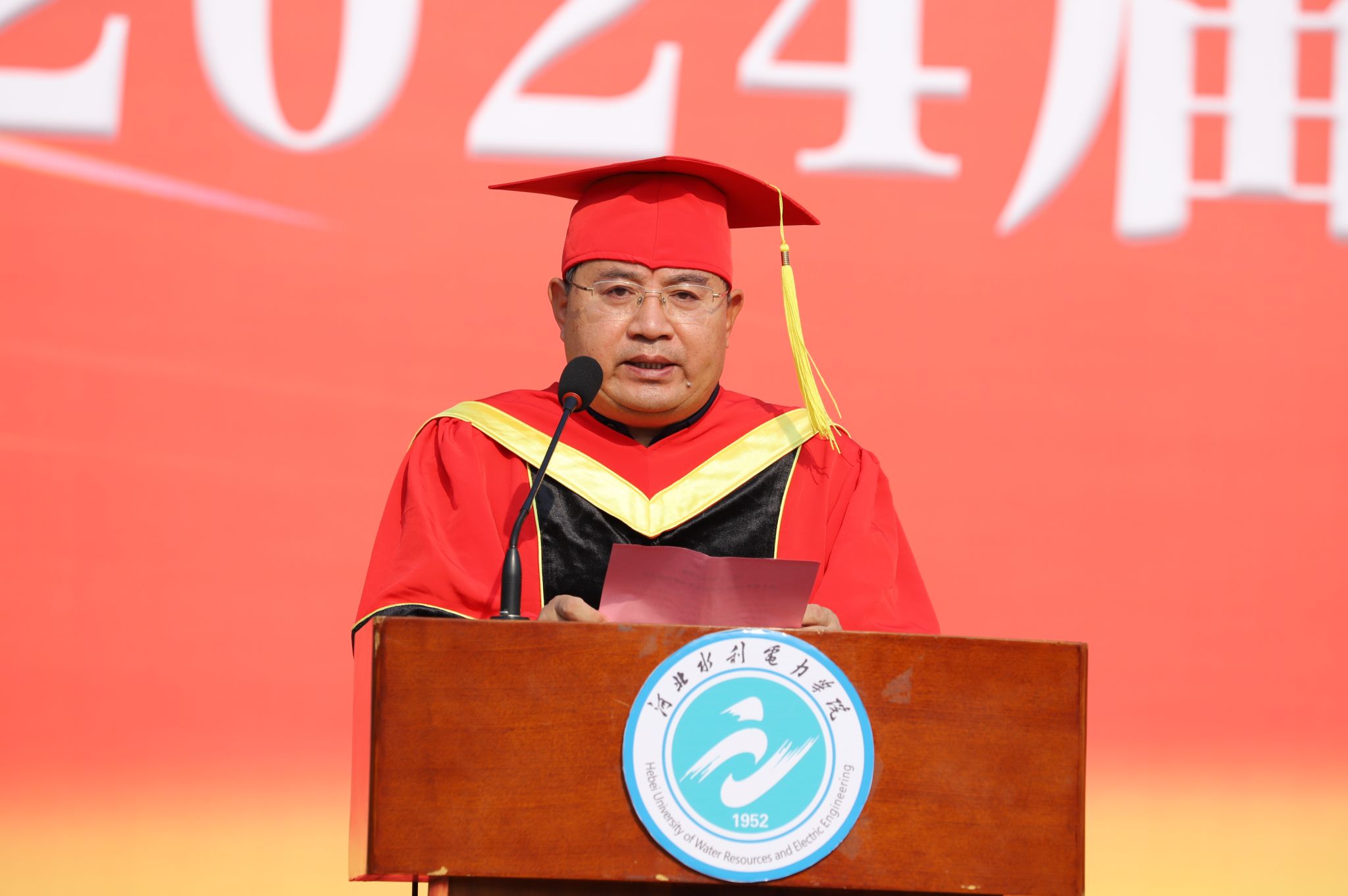机械工程系机械设计制造及其自动化专业2004班史开红同学代表全体毕业生发言,既回顾了自己在大学里的成长历程和收获,也表达了对母校、老师和同学们的感激之情和美好祝愿,并带领全体毕业生进行了宣誓。电气自动化系自动化2303班张瑞鹤同学代表全体在校生发言,表达了对毕业生的祝福和敬意及对自己未来的憧憬和信心。河北省第二批高校“双带头人”教师党支部书记工作室负责人、土木工程系张云老师作为教师代表发言,深情表达了对同学们的不舍和祝福,希望同学们能够珍惜师生情谊,在今后的人生道路上不断学习,为社会做出自己的贡献。学校1997届电气工程系电力工程专业毕业生国网沧州供电公司副总经理、工会主席刘彦升同志作为校友代表发言,对学校的高速跨越式发展感到高兴和骄傲,并给学弟学妹们送上了美好祝福。