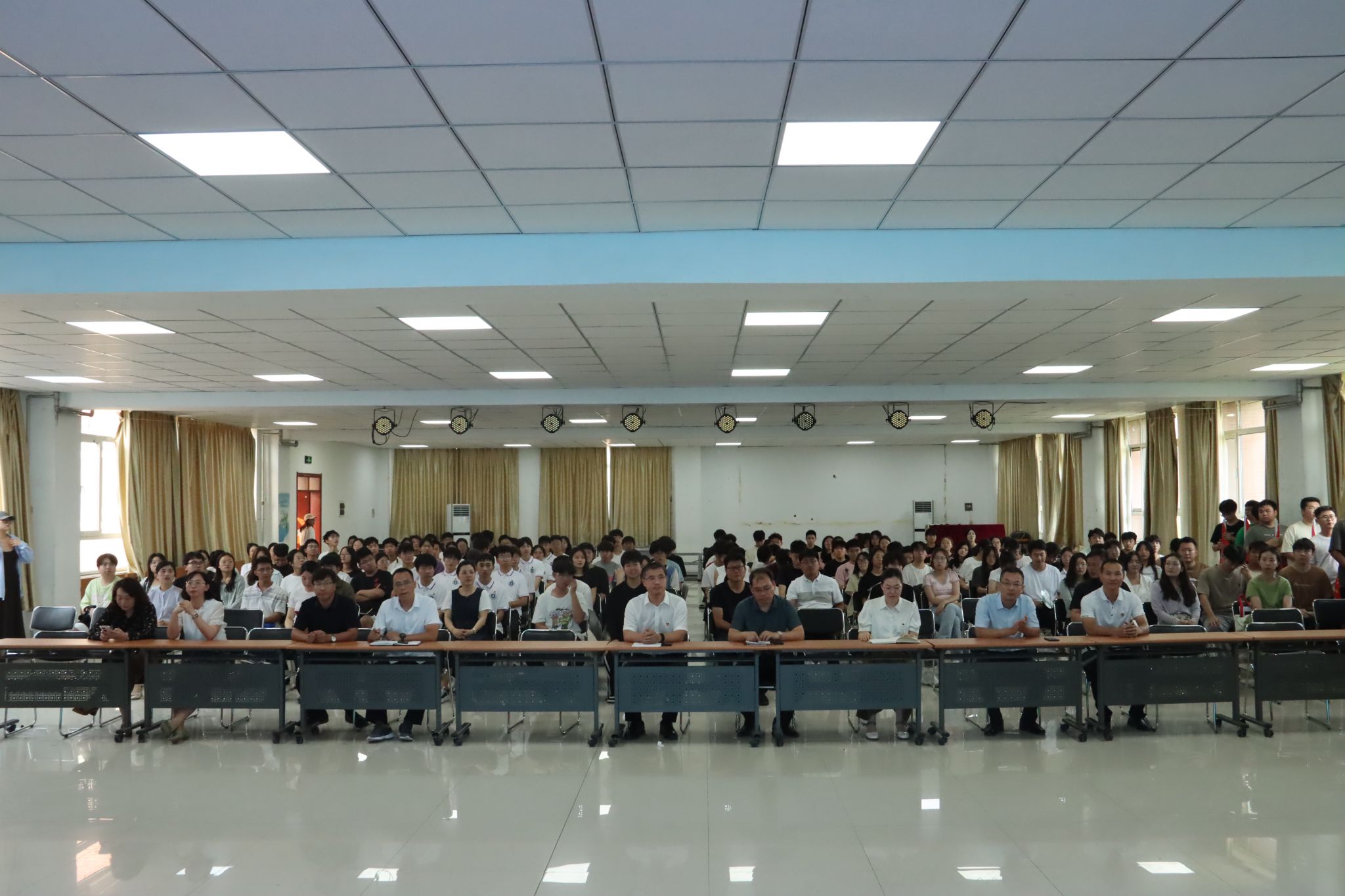 学生处处长郑宝民及八系党总支副书记、团委书记、160名社会实践队员代表参会。