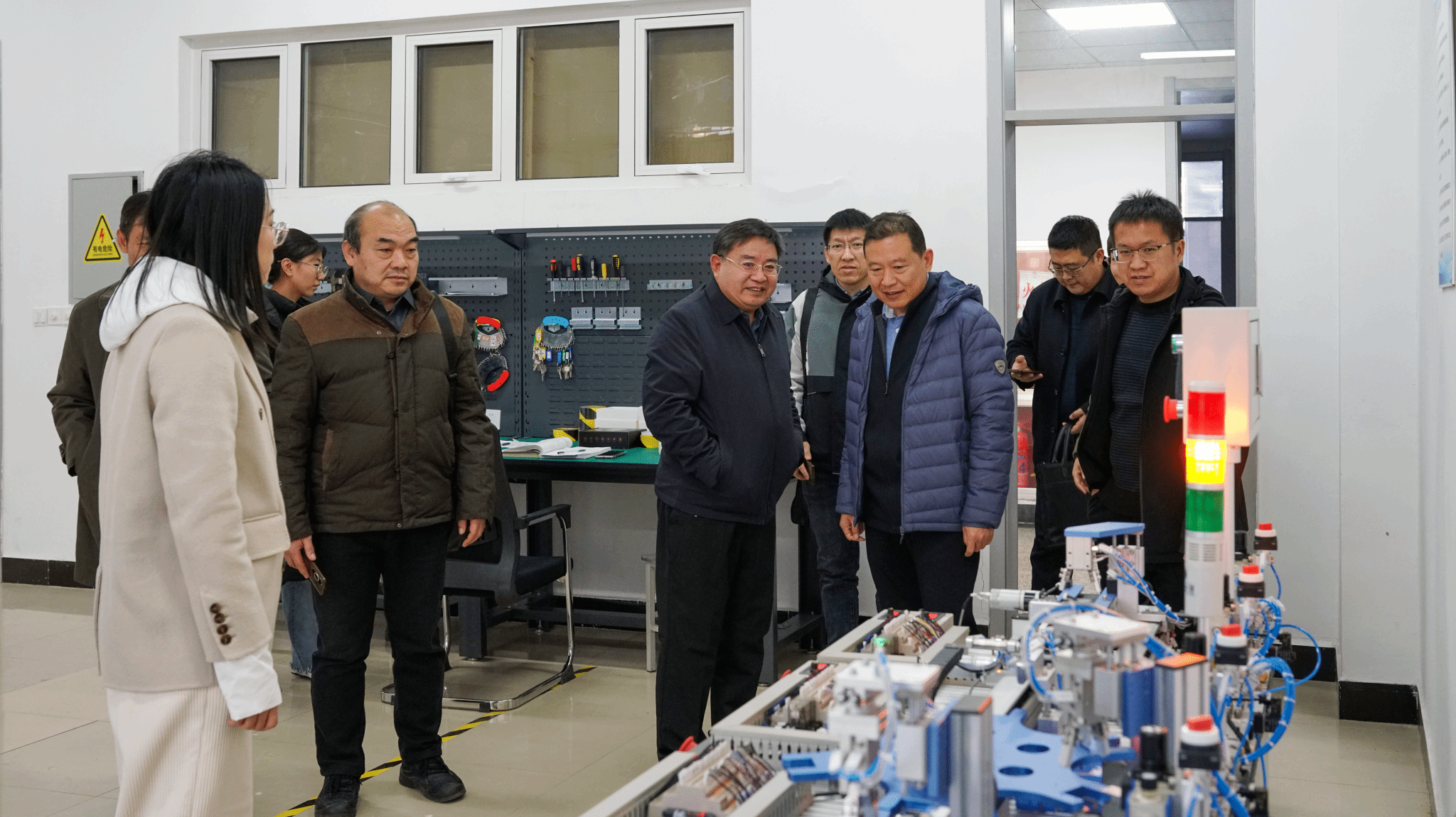 我校教务处长刘文贵,电气自动化系主任唐勇,专业带头人姜久超,自动化教研室主任刘振方、副主任回振桥陪同调研。唐山学院教务处副处长沈丽、智能与信息工程学院院长王超、自动化专业教研室主任袁娜参加了调研。