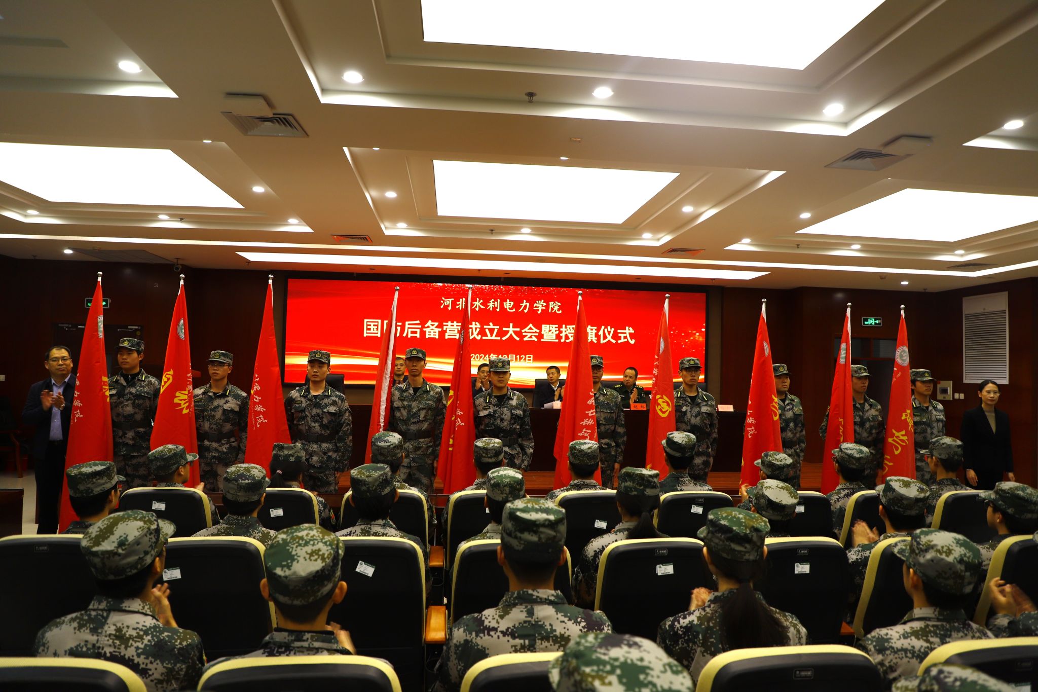 为深入贯彻习近平强军思想,落实“一年两征”、精准征兵、精准育苗部署安排,建立健全大学生征兵常态化长效机制。12月12日下午,我校国防后备营成立大会暨授旗仪式在弘文守正楼报告厅举行。学校党委书记张效松,党委副书记、校长王滨,副校长杨凯,运河区人民武装部部长赵林出席本次会议,大会由学校人民武装部部长郑宝民主持。