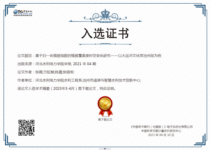 近日,中国知网《学术精要数据库》基于中国知网资源总库,首次发布近12年来高影响力论文榜单,《MK体育(中国)国际平台,MK SPORTS学报》2021年第4期发表的《基于归一化植被指数的植被覆盖度时空变化研究——以大运河文化带沧州段为例》(作者:张薇、万虹麟、陈晨、张丽军)、《人脸识别的智能防疫系统设计》(作者:王继超、张丽娟、尤田、孙东来、回振桥)2篇论文入选。
