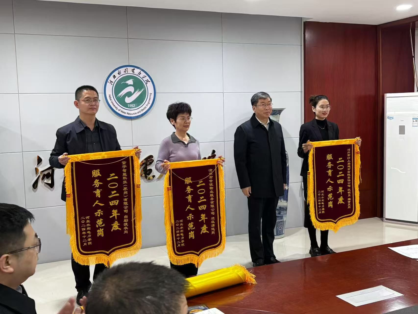 2月25日,我校在弘文守正楼1102会议室召开2024年度优秀驻校服务单位及服务育人先进表彰会。副校长于振海出席会议并讲话,各驻校服务单位监管部门负责人、各驻校服务单位负责人、服务育人先进个人代表、服务育人示范岗代表参加会议,会议由后勤管理处处长周学增主持。
