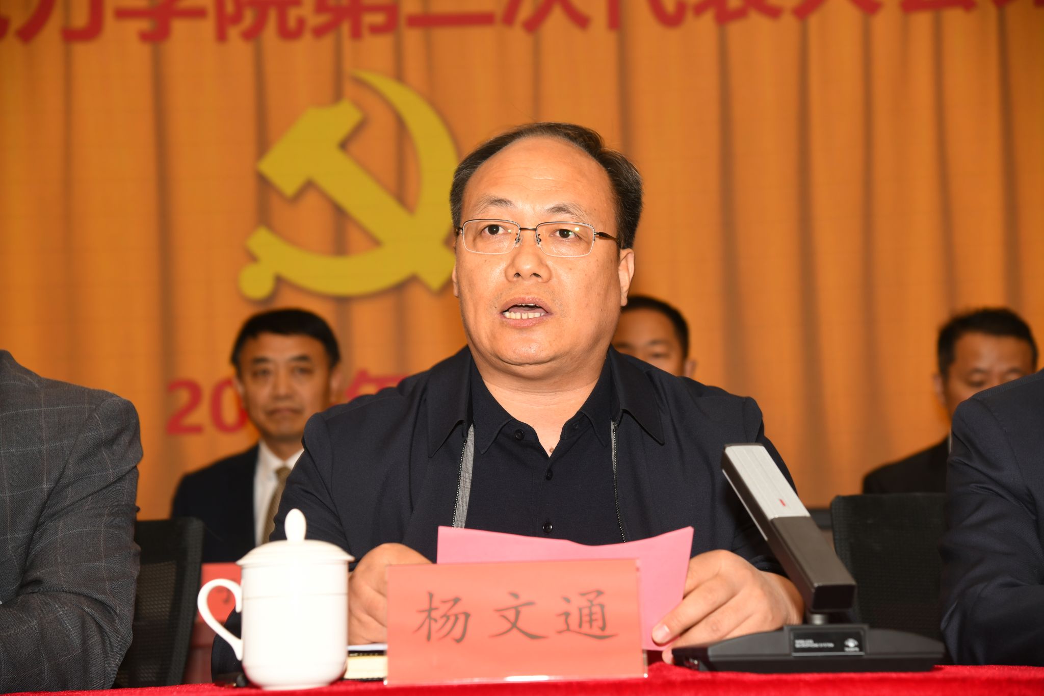 杨文通向大会的胜利召开表示热烈的祝贺。杨文通表示,五年来,MK体育(中国)国际平台,MK SPORTS党委认真落实第一次党代会目标任务,紧紧围绕立德树人根本任务,不断解放思想,大胆创新改革,班子整体功能得到有效发挥,在党的领导、人才培养、队伍建设、科学研究、社会服务等方面取得了显著成就,为区域教育事业发展提供了重要的人才支撑和智力支持,为区域经济社会和水利电力行业发展做出了积极贡献,为学校赢得了良好的社会声誉。希望新一届水电学院党委班子团结带领广大党员干部和师生员工,高起点、高标准、高质量精心谋划和落实好今后一个时期的奋斗目标和战略任务,为全面建成特色鲜明高水平应用型本科院校贡献应有的力量!