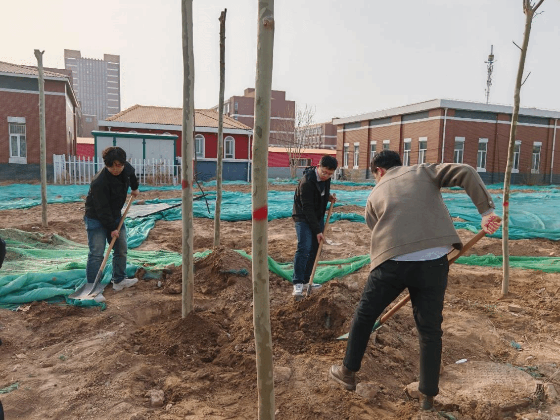 在义务植树活动现场,电力工程系师生早早地来到了指定的植树地点,兴致勃勃地投入到了植树活动中。植树过程中,现场气氛热烈而有序,大家热情高涨,齐心协力,挥锹铲土、扶正树苗、填土夯苗,分工合作、配合默契地种下了一棵棵树苗。经过大家的共同努力,一棵棵树苗整齐地矗立在校园的土地上,为校园增添了一抹抹清新的绿色。