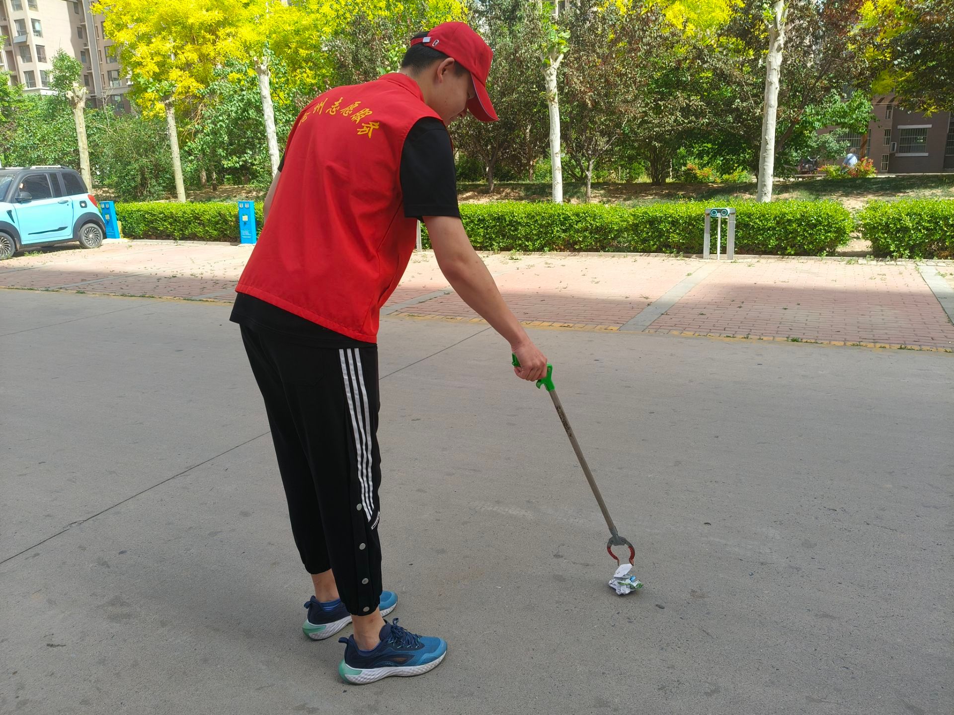 活动开始后,志愿者们迅速投入到工作中。他们手持扫帚、垃圾袋等工具,认真清扫小区内的烟头、纸屑、垃圾和动物粪便,清理楼道杂物,清除乱贴乱画的小广告。经过大家的努力,小区环境焕然一新,变得更加整洁美观。志愿者们积极引导居民将车辆停放在指定位置,确保停车秩序井然。对于遛狗不牵绳、飞线充电、上身赤裸、随意晾晒等不文明行为,志愿者们也进行了耐心地劝导,向居民宣传文明城市创建的重要性,引导大家养成良好的文明习惯。