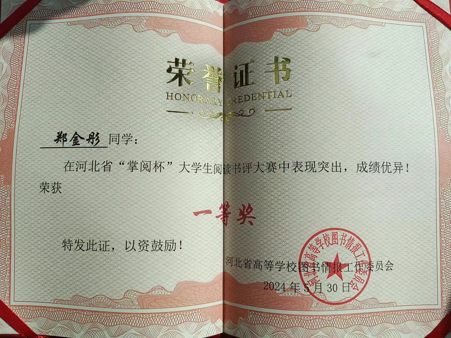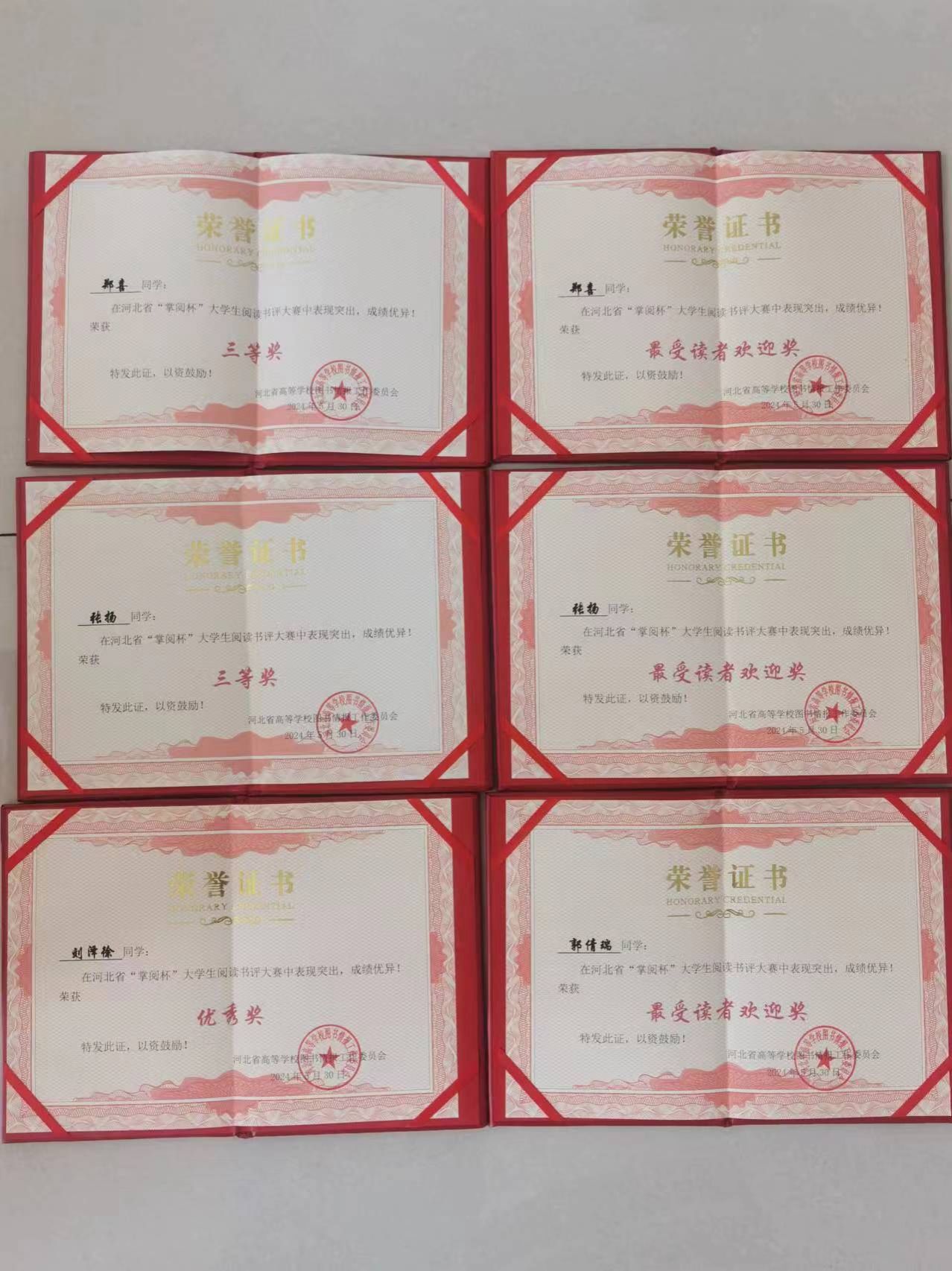 我校在河北省“掌阅杯”大学生阅读书评大赛中喜获佳绩