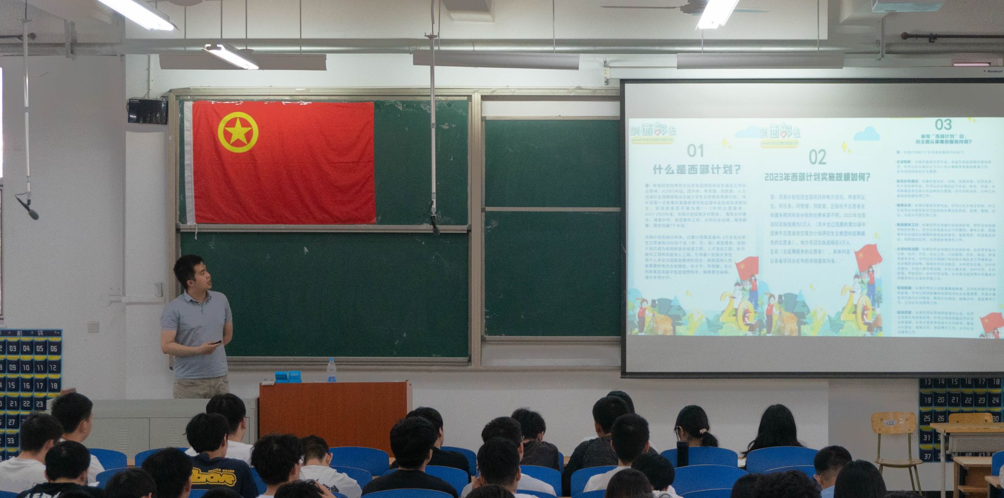 佟方宇老师阐述了“青年志愿者行动”的深刻内涵,从志愿服务的精神内涵、志愿者的标志及组织、团员与志愿者精神、志愿者精神优秀事例四方面进行了讲解。佟老师基于“奉献、友爱、互助、进步”的志愿者精神,结合具体事例讲授了共青团员与志愿者的关系、共青团员如何在志愿服务中永葆先进性,让大家深刻地了解到了“志愿”这个词背后所包含的无私奉献、团结互助的奉献者精神。