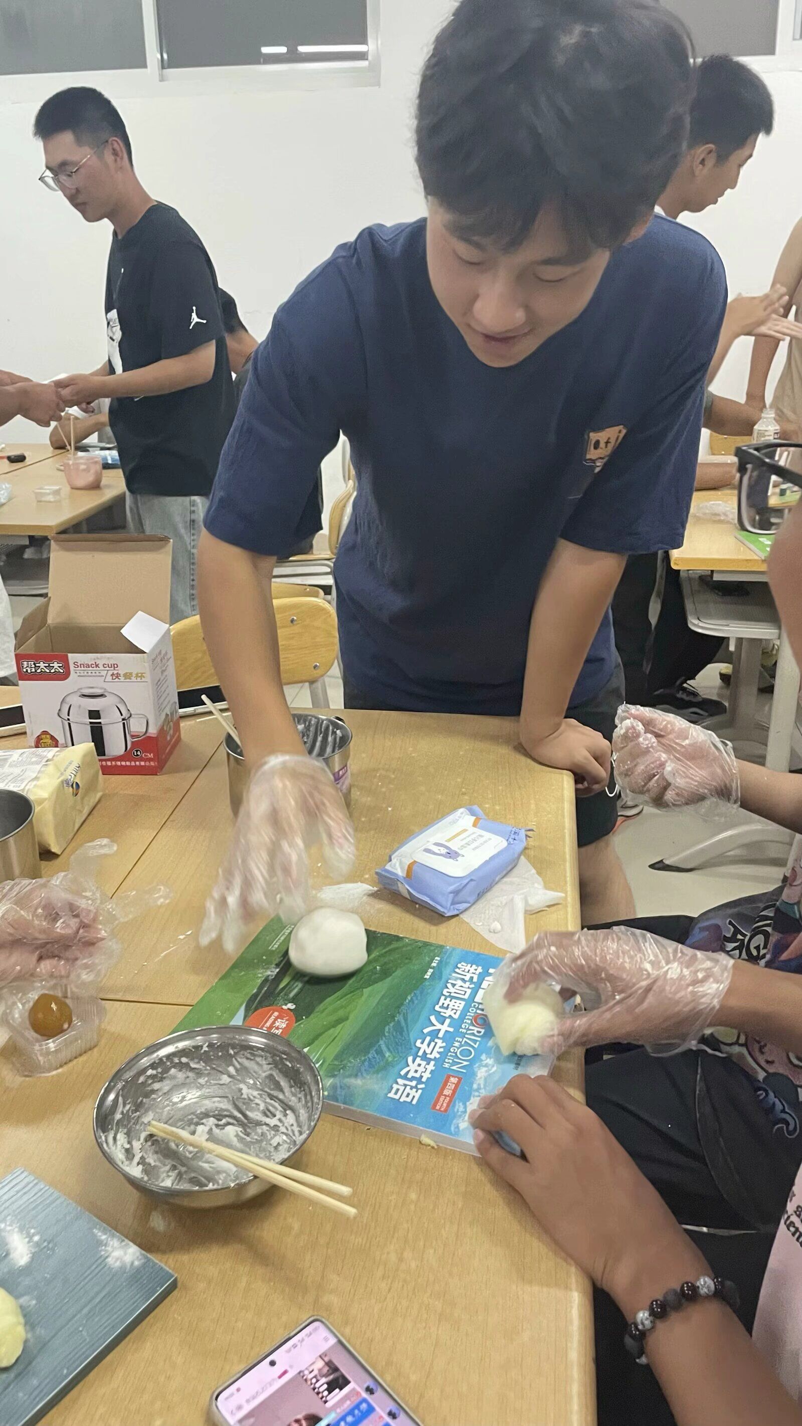 在活动现场,王静静指导同学们学习手工月饼的制作技艺。在老师的悉心传授下,同学们兴致勃勃地投入到月饼的制作中,从揉面、包馅到压模,每一步都倾注了同学们的用心和热情。随后,小组同学上台展示,并陈述小组创作理念,现场评委为小组作品投票,活动现场洋溢着欢声笑语,同学们在亲手制作月饼的过程中,不仅深刻感受到了中华传统文化的魅力,也加强了同学之间的交流与友谊。同学们纷纷表示,此次活动不仅锻炼了动手能力,更增强了民族自豪感和集体荣誉感。
