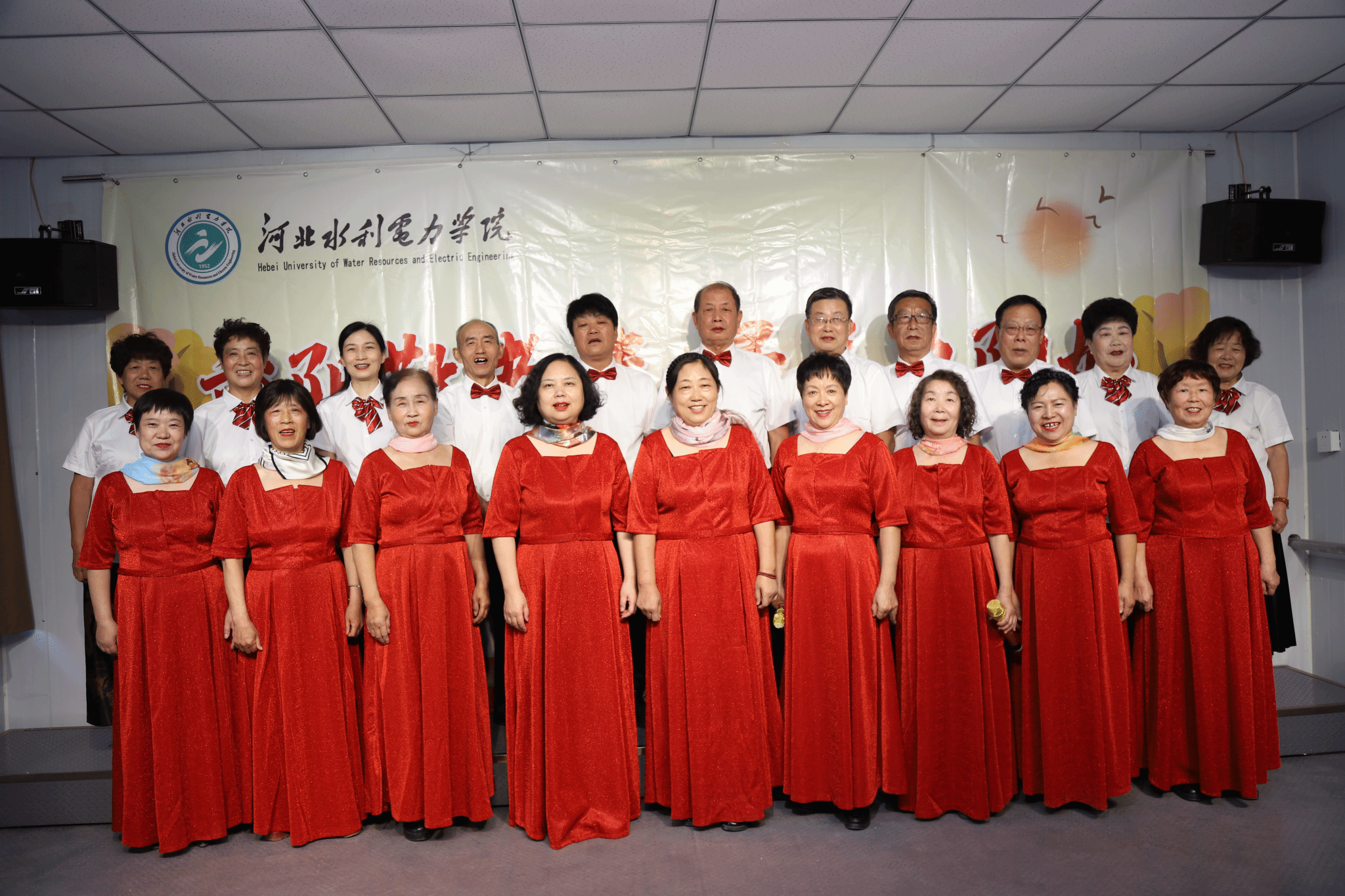 联欢会现场气氛热烈,节目表演精彩纷呈:韩杏改老师带来的朗诵《九九重阳》,声音洪亮,情感饱满,让人们在优美的诗句中感受到了重阳节的浓厚氛围;石国香老师的舞蹈《三月桃花开》更是如春风拂面,轻盈的舞姿仿佛将大家带入了一个桃花盛开的美丽世界;刘国民、赵兰庚、王建平、李志勇四位老师的四重唱《啊,朋友再见》,用歌声诠释友谊与岁月的珍贵,赢得了大家阵阵掌声;最后,大家用三首大合唱《歌唱祖国》《我的祖国》《最美不过夕阳红》抒发对祖国的热爱与祝福、表达对美好生活的向往和对晚年生活的热爱,也为本次联欢会画上圆满的句号。