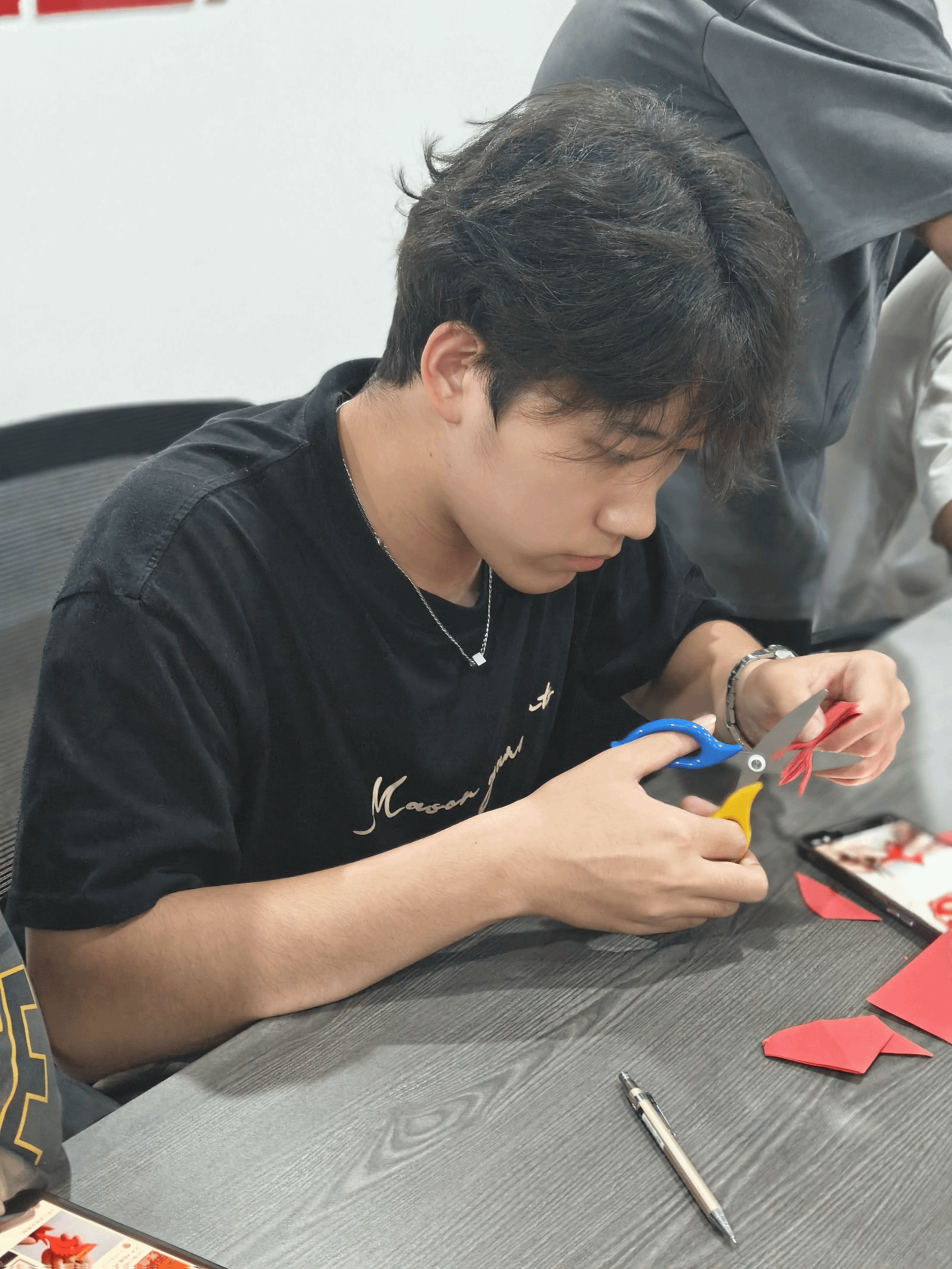 活动现场,同学们聚精会神地折叠红纸、用心剪裁,用一双巧手、一把剪刀创造出一幅幅生动的剪纸作品。这些作品不仅是对剪纸艺术的传承,更传达出同学们对勤俭节约、爱惜粮食理念的理解。