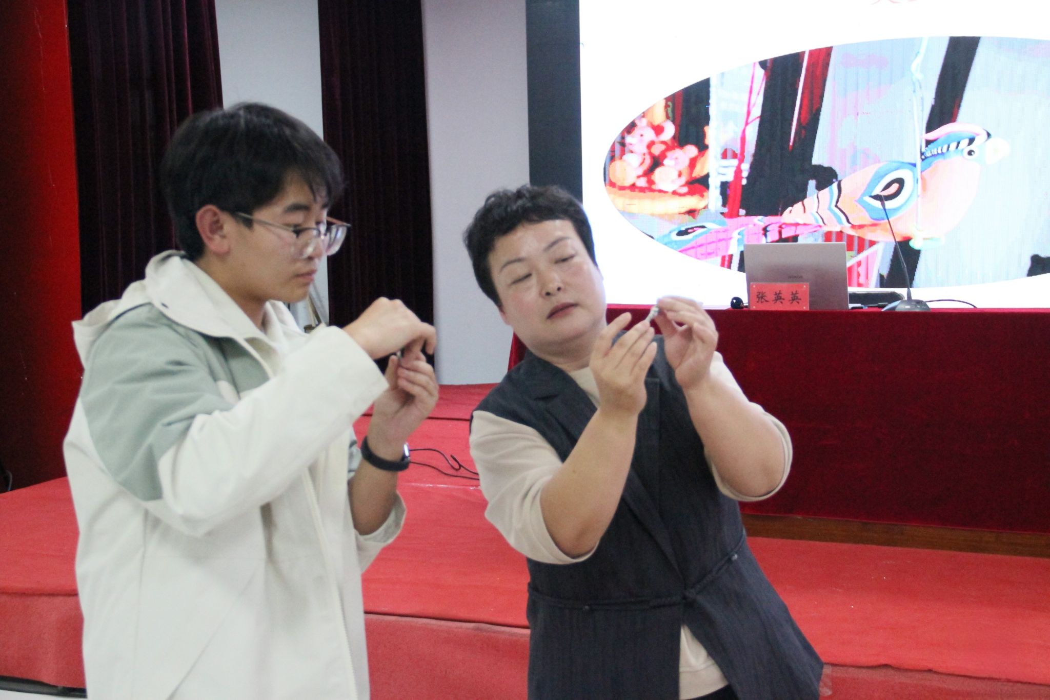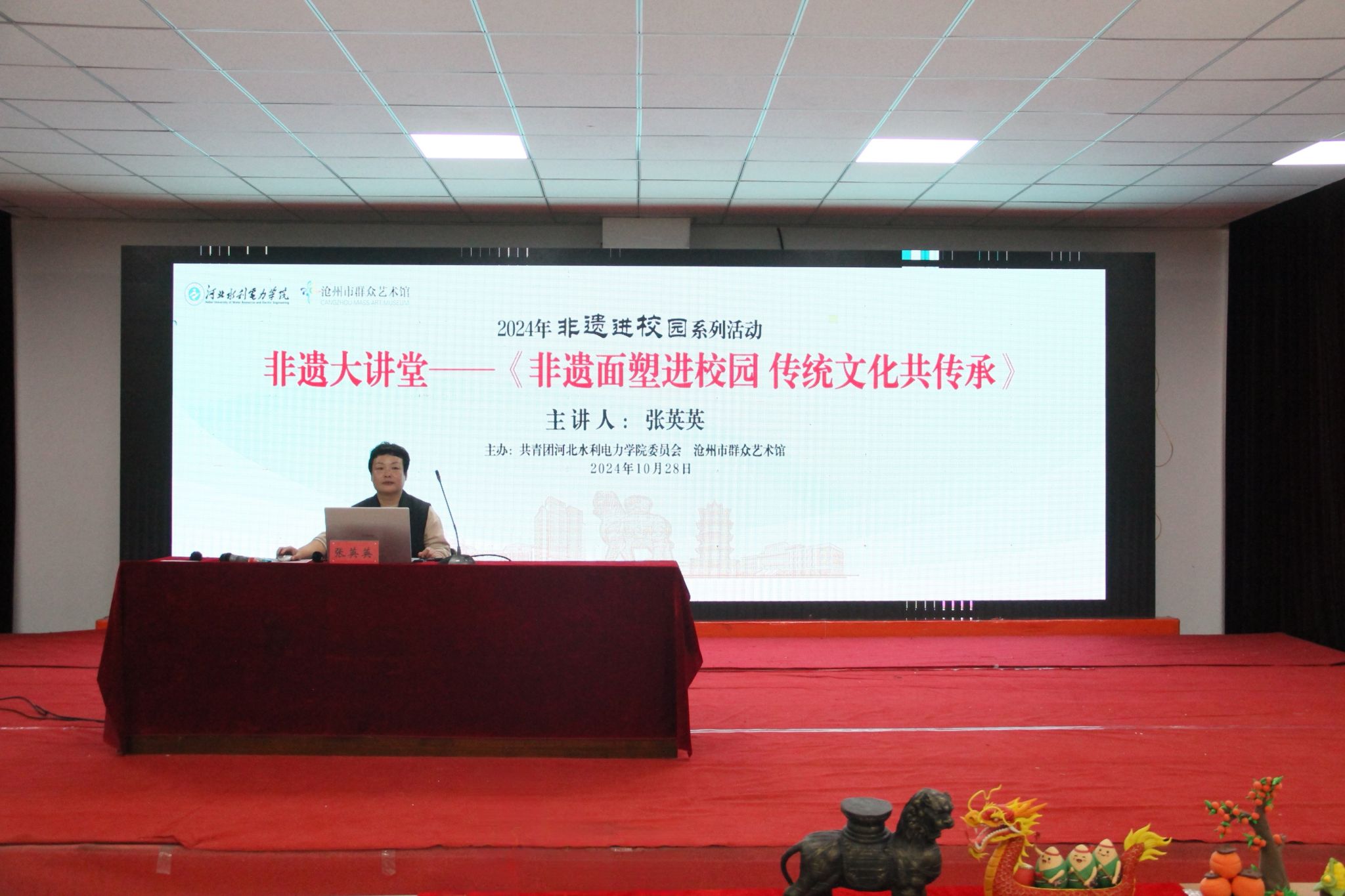 为弘扬我国优秀传统文化,加强大学生对非遗文化的认知与了解,10月28日,校团委与沧州市群众艺术馆在启智楼B402联合举办《非遗面塑进校园 传统文化共传承》讲座活动。活动邀请非遗技艺使者张英英老师作为主讲人,向同学们讲授面塑艺术及面塑技法的相关内容。
