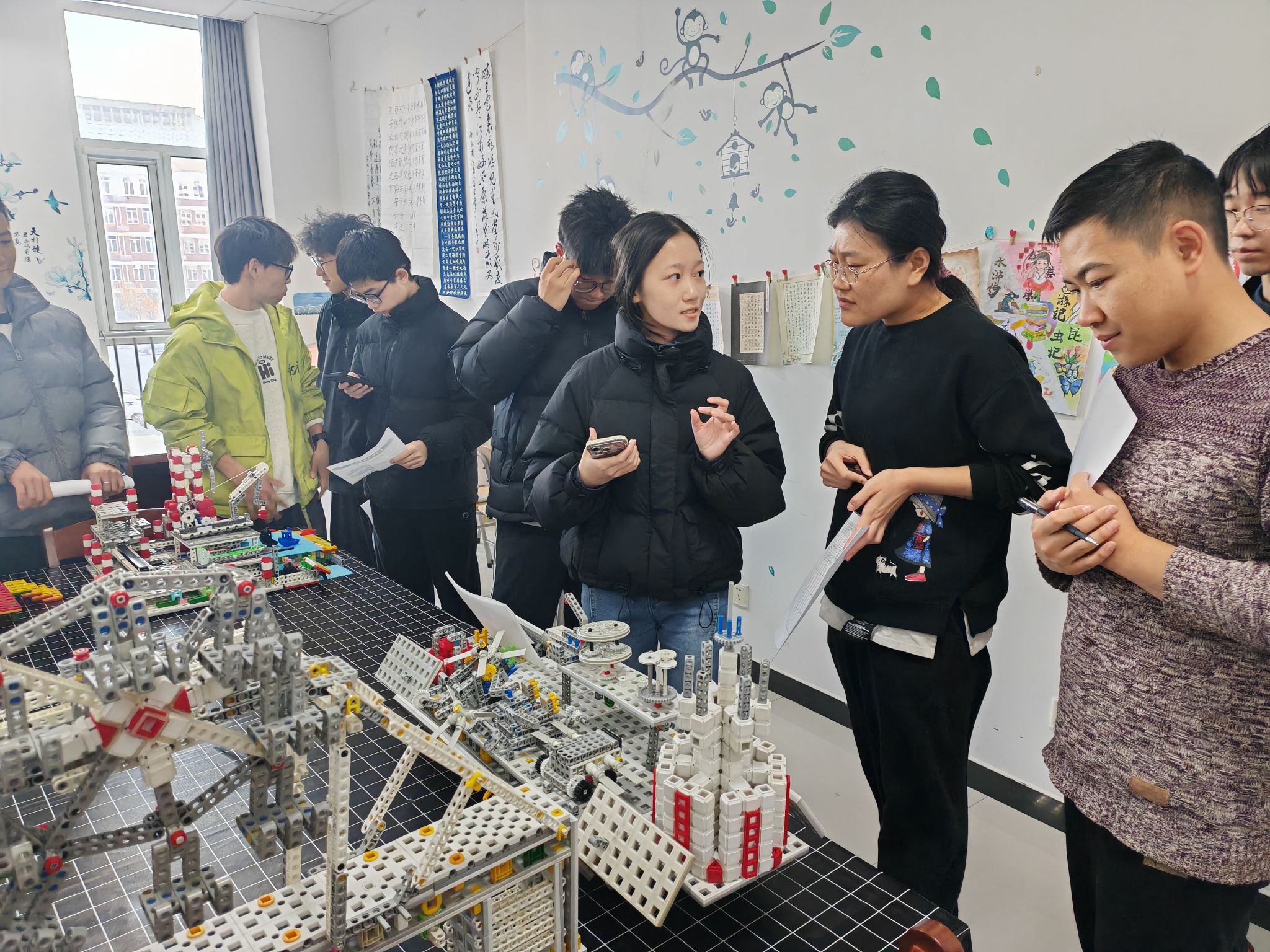系列活动分别为建筑积木搭建比赛、智能车编程比赛、机械积木创意设计比赛,由各系学生组成团队报名参加,我校大学生创新创业社团指导教师、图书馆教师、民革成员张源老师具体组织并指导,场地依托图书馆二楼“党外人士之家活动室”打造创新社团活动室—“创新空间”,土木工程系党委书记王诚杰、图书馆馆长陈恩增、机械工程系副主任石岩博士、教学督导组李桐栋、电气自动化系团委书记张宁以及王浩、李瑞雪等相关单位领导老师多次来到现场观赛,听取学生们的创意思路并进行交流点评。